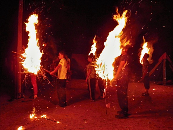 • Na závěrečný táborák a sejmutí vlajky se letos tak nějak nepodařilo kvalitně udělat fagule a tak se splnil doslova text ze závěrečné hymny „… zhasíná svit pochodní“….