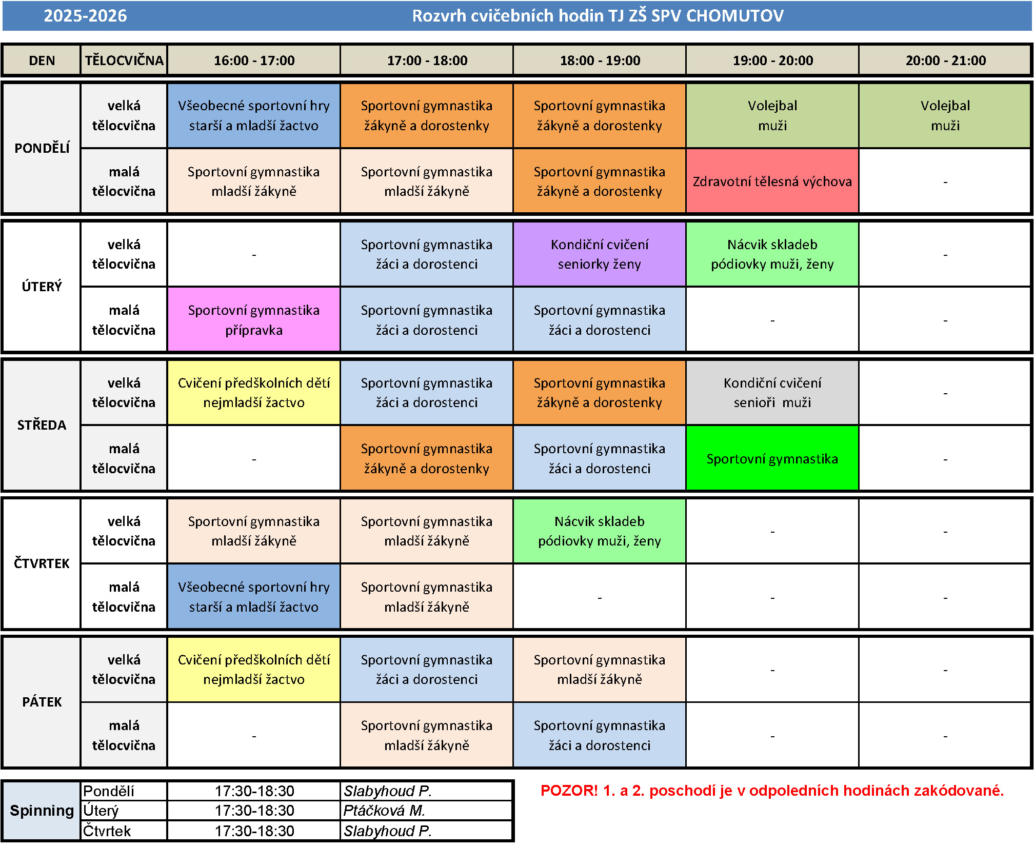 Sportovní gymnastika – netradiční sporty – předškolní děti – senioři – spinning